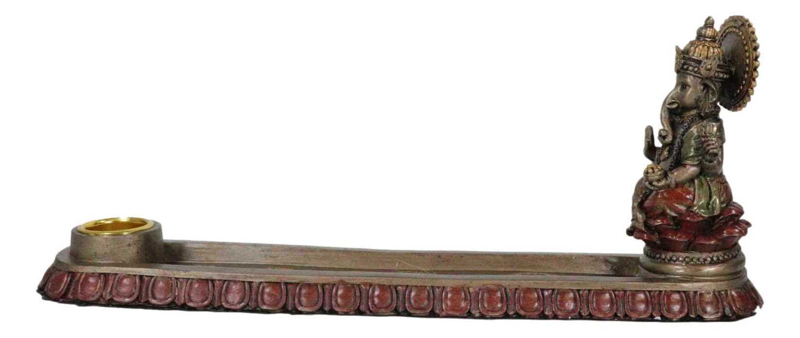 • This Hindu Ganesha Incense Burner Statue is made of designer composite resin mixed in bronze patina powder, hand painted and polished individually.