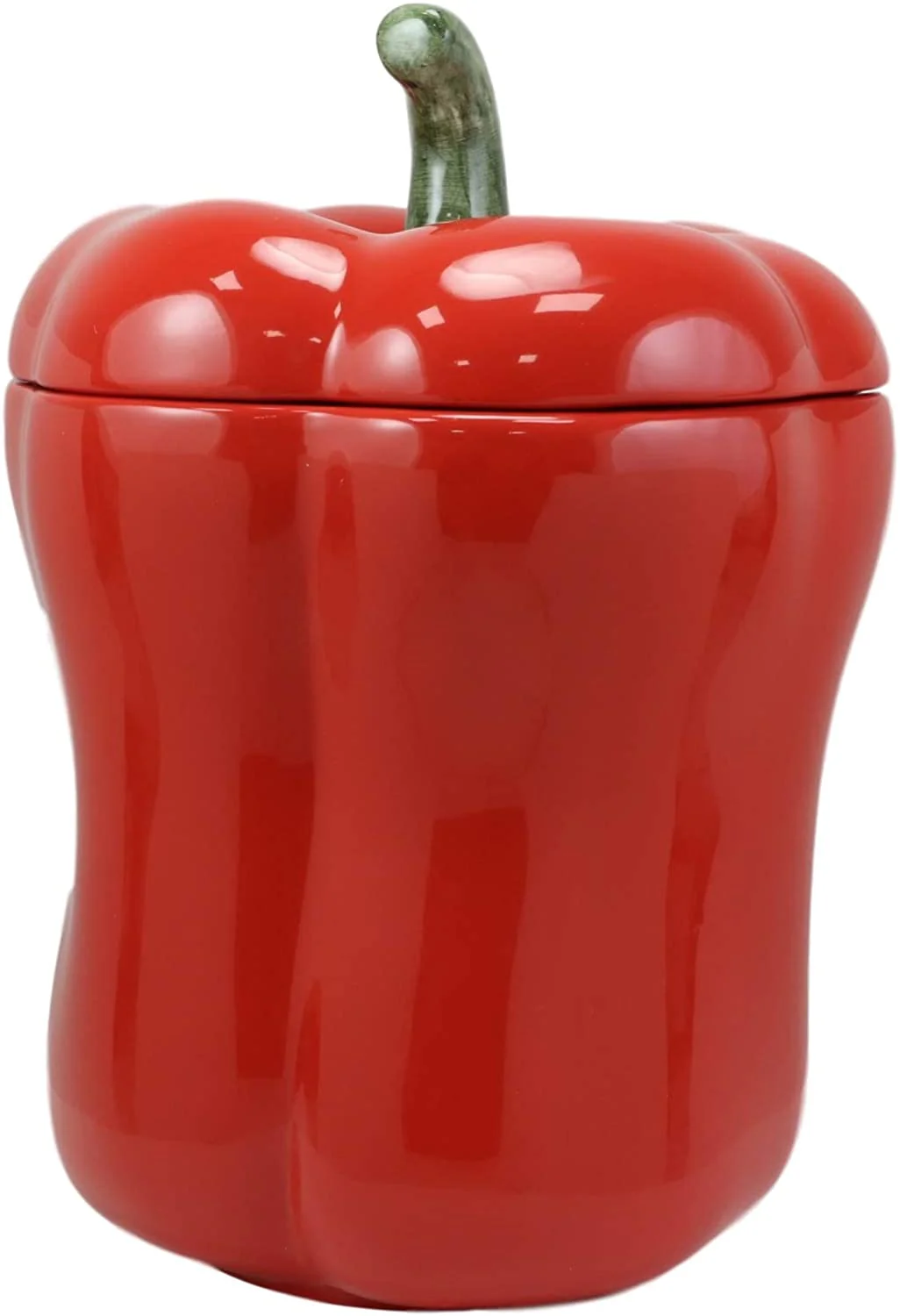Ebros 10" H Ceramic Whole Bell Pepper Vegetable Canister Container Jar With Lid