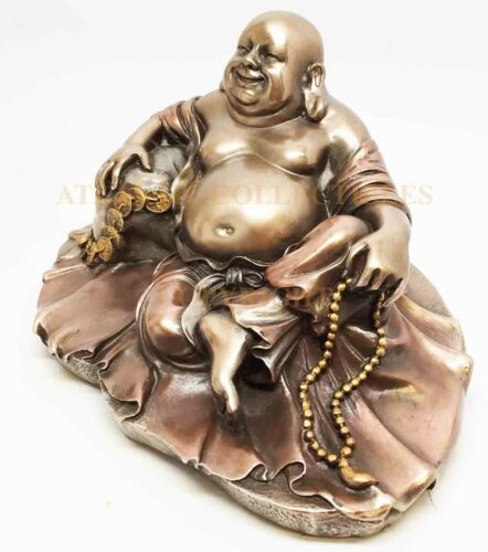 Ebros 11" Long Lucky Happy Buddha Resting on Fortune Coins Wealth Bodhisattva Sculpture Statue