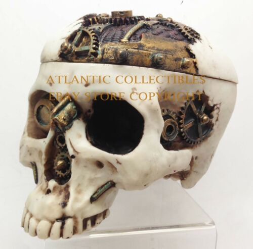 Ebros 7.25 Inch Mechanical Steampunk Open Skull Decorative Box Statue Figurine—